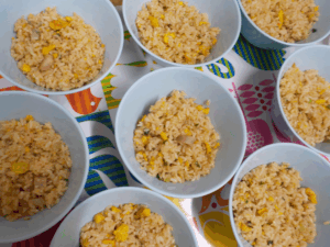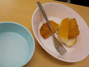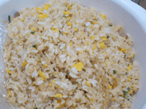 そしてまた別の日のおやつです。この日は元ラーメン屋店員の職員が精魂込めて…解凍したチャーハンです。