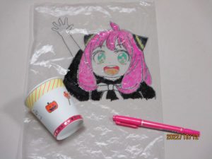 ポリ袋や紙コップにマジックペンで絵をかき、自分だけのもこもこさんを作ります(*´▽`*)